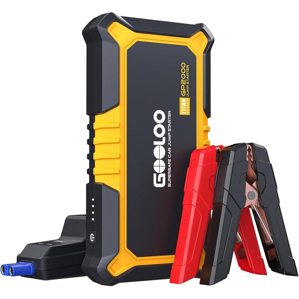 IN THE BOX – GOOLOO GP2000 Portable Car Jump Starter Battery Pack, Smart Jumper Cable, USB to Type-C Cable, Storage Case, User Manual.