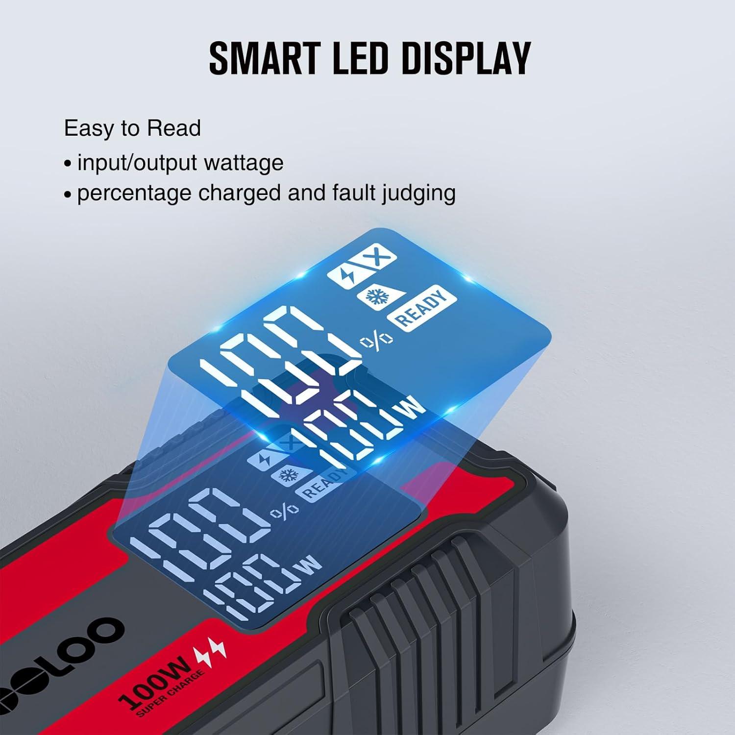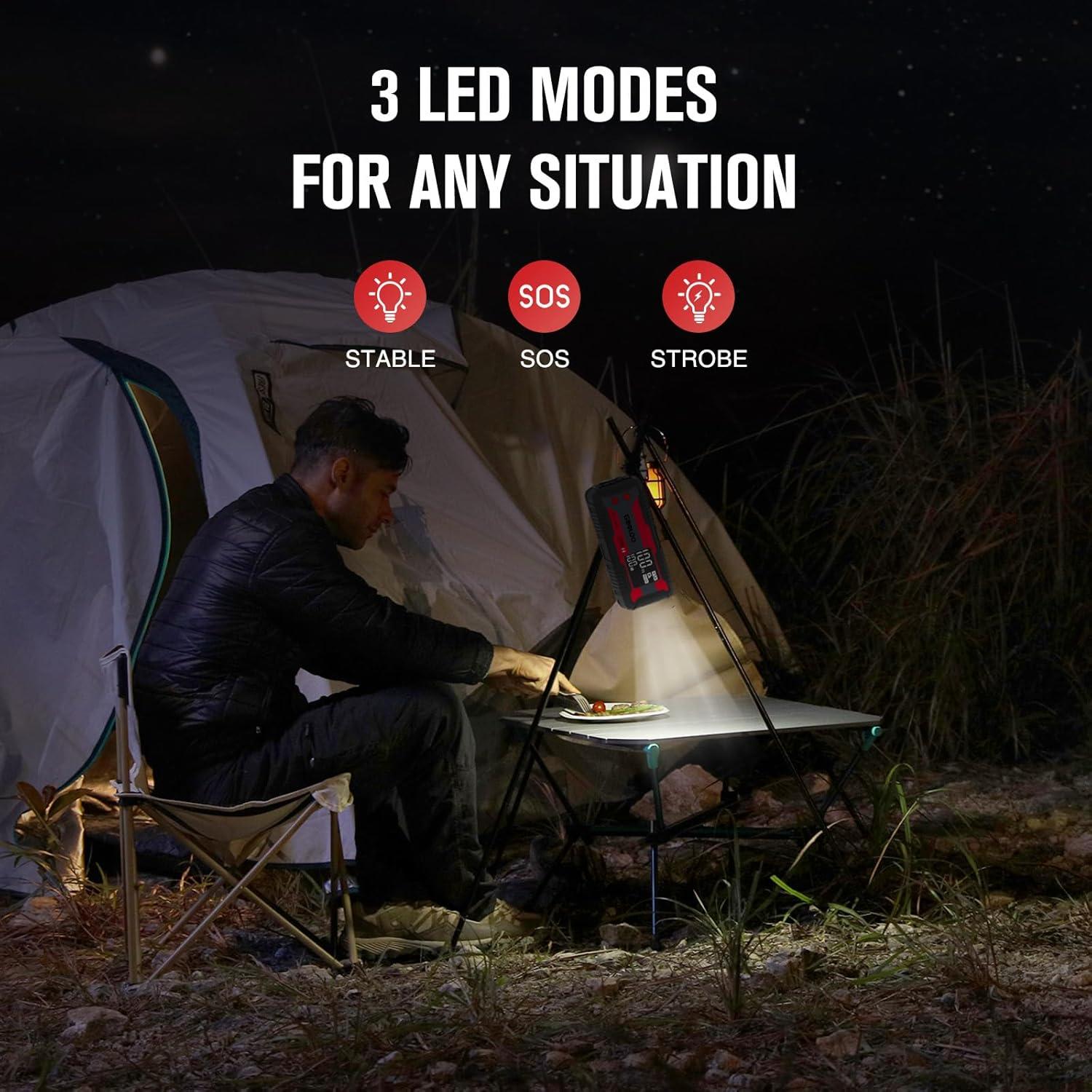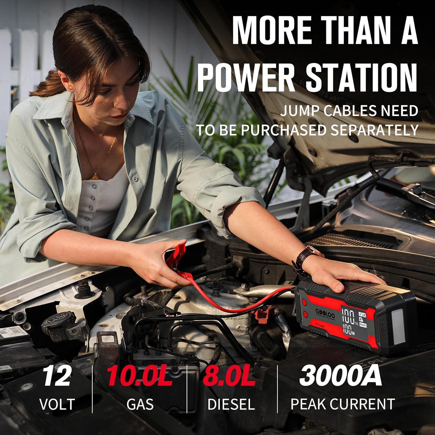 [Powerful & Safe Jump-Start] – With 3000A peak cranking power and built-in 10 kinds of protection technology, the GTX280 battery jump starter can safely start a dead 12 volt car battery in seconds. Wake up any vehicle with 10.0L Gas/8.0L Diesel engines (backward compatible), including common cars, motorcycles, trucks, cargo vans, ATVs, snowmobiles, yachts and many more, even in extreme temperatures -4°F to 140°F (Jumper Cable needs to be purchased separately).
